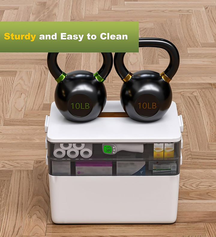 - [Large Capacity]:It completely changes the way you store your medications. emergency medication, and other medical supplies. Compact sizes allow the medicine storage organizer to fit well in cars, trunks, cabinet Size:13.38*8.67*10inch.